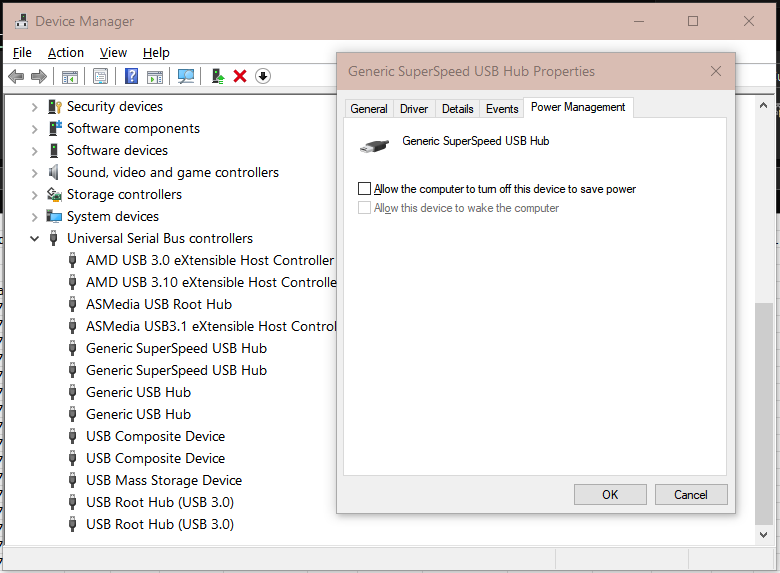 Prošetaj kroz sve “Universal Serial Bus controllers” >> Properties >> Power management >> i poisključuj “Allow the computer to turn off this device to save power”: