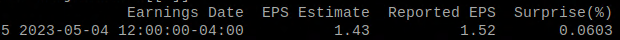 DeijtaFreijm["Earnings Date"][1] == 2023-05-06 00:00:00-04:00 DatumKraj = DeijtaFreijm["Earnings Date"][1] + timedelta(days=15) DatumKraj == 2023-05-21 00:00:00-04:00