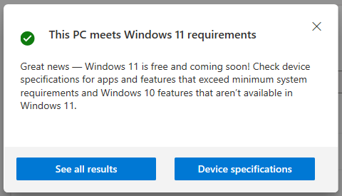Provjera prikladnosti računala za prelazak na Windows 11, “Blue Vulva”.