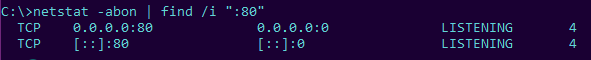 netstat -anop | grep ":80" | grep -i "listen"-