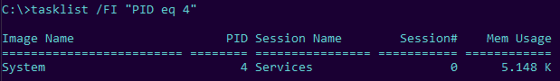tasklist /FI "PID eq 4"